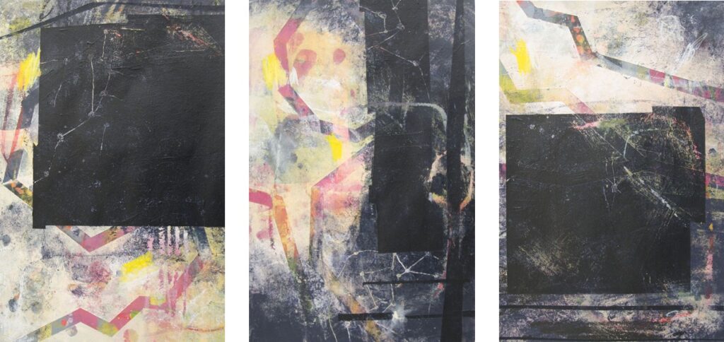 Acrylic paint and mixed media on watercolor paper
