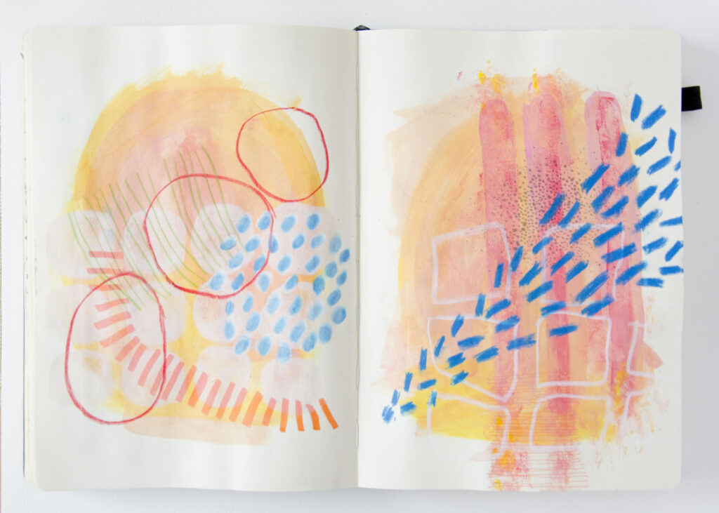 I’ve kept a visual journal for many years and for a long time it was my main artistic practice. These days I keep several books, for different purposes including journaling, composition studies, collage, drawing and studio notes. The following are a few examples from different books.